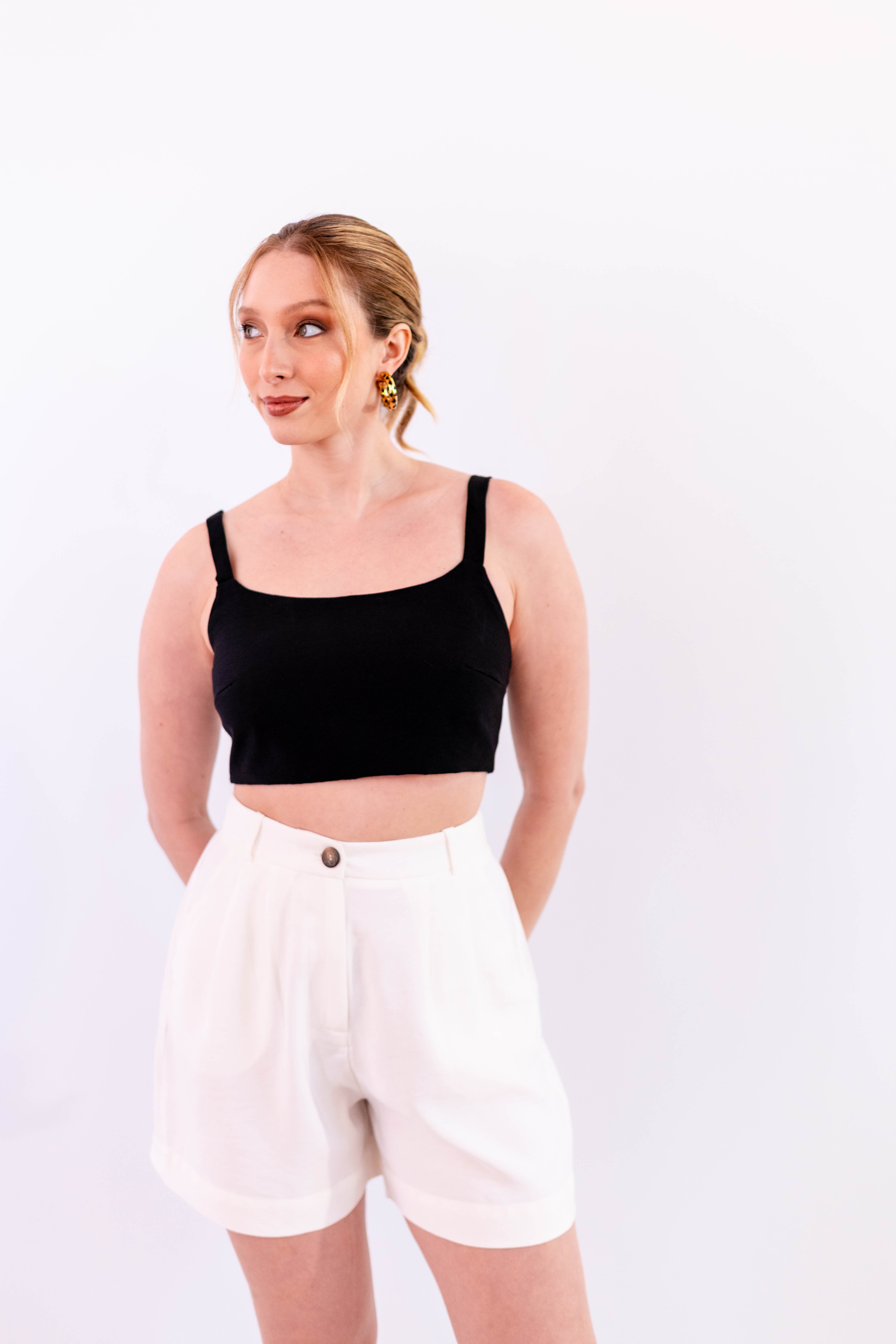 Uma bermuda versátil e atemporal, perfeita para produções frescas e refinadas durante toda a estação.