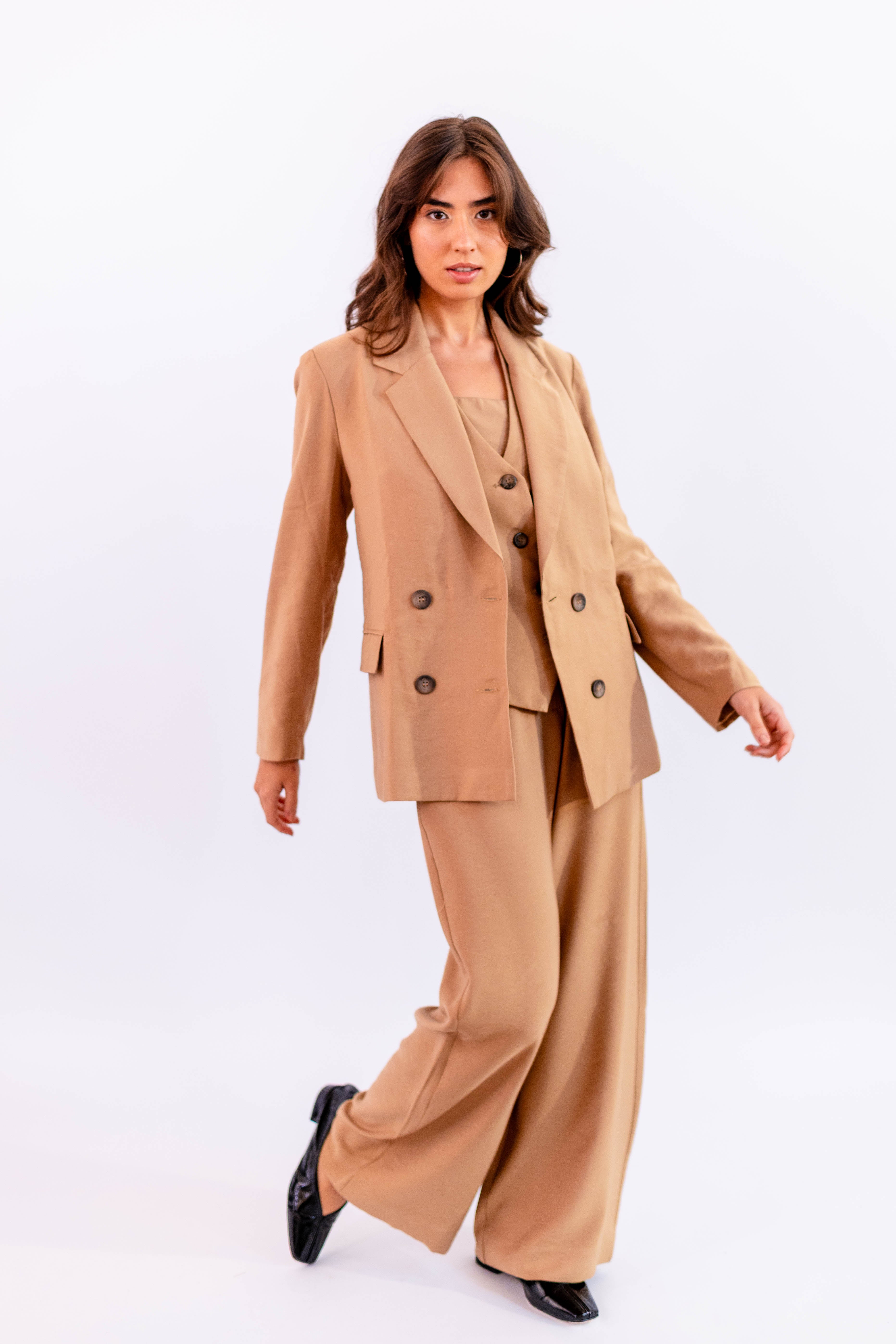 O tom de bege foi escolhido por sua capacidade de harmonizar com qualquer paleta: neutro, atual e sofisticado. Ele permite combinações monocromáticas, contrastes elegantes e produções frescas, tornando a peça um essencial para dias que pedem leveza e elegância.