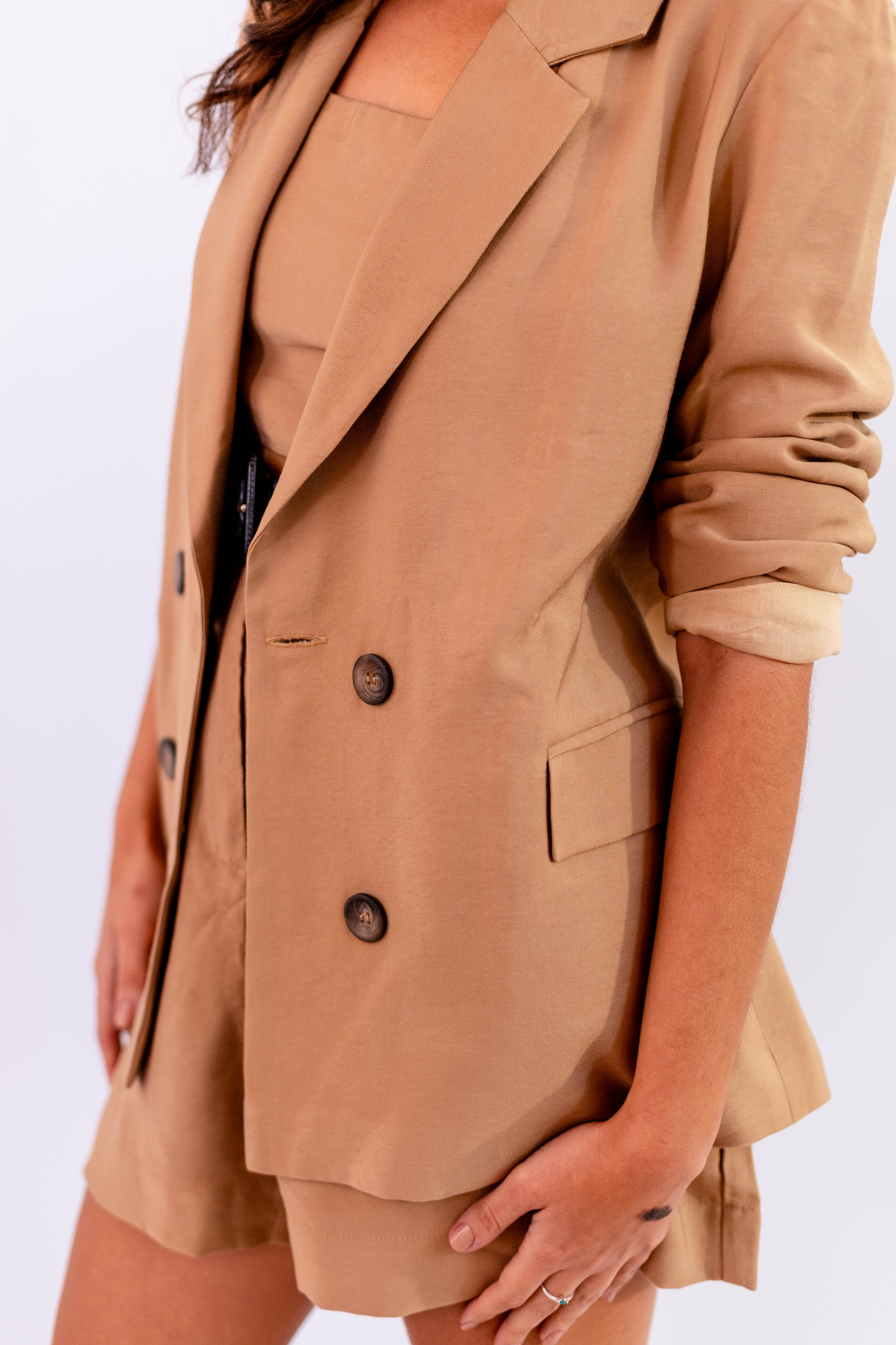 Blazer Leve Bege – neutralidade sofisticada em alfaiataria leve